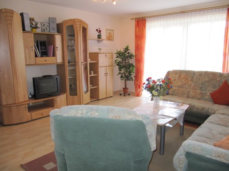 Wohnzimmer (15 m²) mit großer Couch und 2 Sesseln